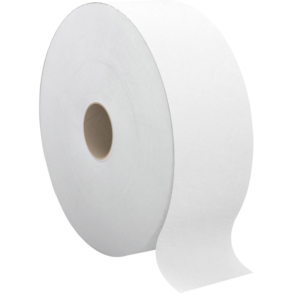 Strong, soft and durable, PRO Select Jumbo Toilet Paper is designed to maximize performance and convenience. It is ideal for use in high-traffic public or commercial restrooms, reducing maintenance with its long-lasting rolls. Green Seal certified and made from a high percentage of recycled fibers, this two-ply bathroom tissue exceeds EPA comprehensive procurement guidelines. The jumbo roll helps cut down on runouts and reduces maintenance time, ensuring customer satisfaction time and time again. It fits in jumbo toilet paper dispensers that can accommodate this roll's 12" diameter. Bathroom tissue is an optimal choice for use in restrooms in foodservice, retail shops, industrial settings and schools. It safe for sewer and septic systems.