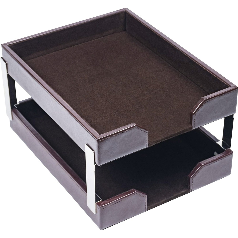 Dacasso Bonded Leather Double Letter Trays - Desktop - Dark Brown - Bonded Leather, Velveteen - 1 Each