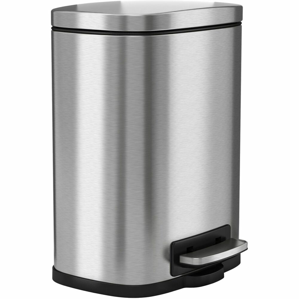 HLS Commercial Fire-Rated Soft Step Trash Can - 1.32 gal Capacity - Pedal Control, Handle, Durable, Smooth, Lid Closure, Fingerprint Proof, Fire Retardant, Removable Inner Bin - 11.8" Height x 8.5" Width x 7.3" Depth - Stainless Steel - Silver - 1 Each