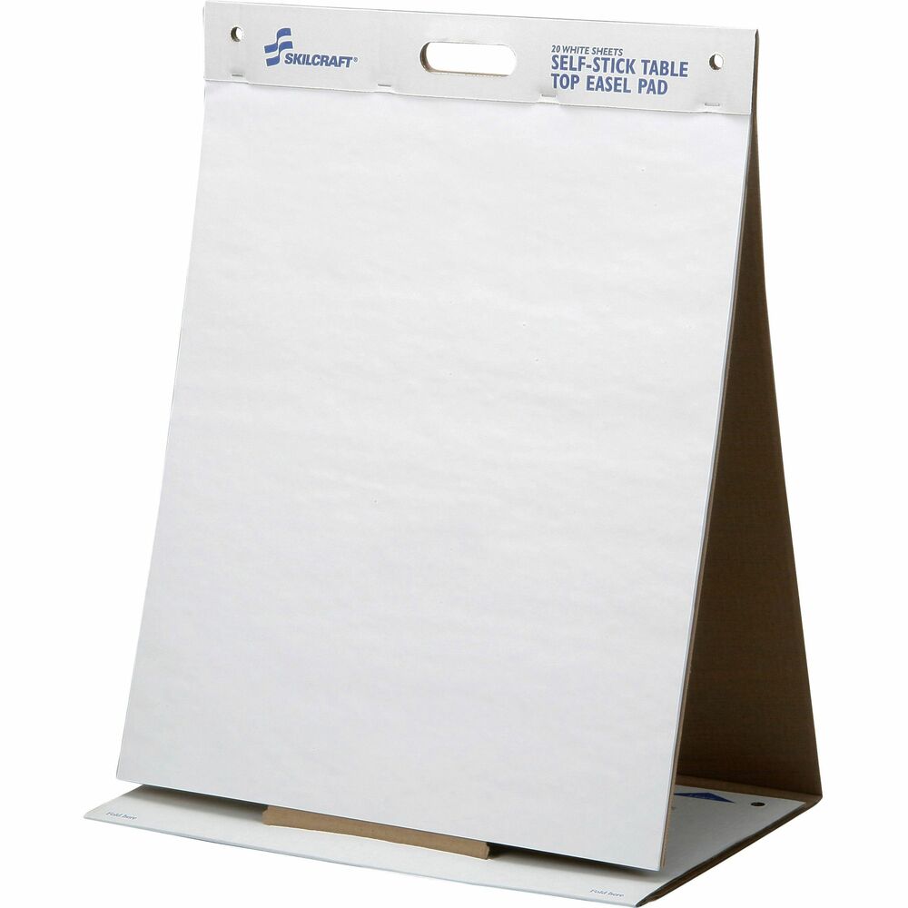 SKILCRAFT® Self-Stick Tabletop Easel Pad - 20 Sheets - 18 lb Basis Weight - 20" x 23" Sheet Size - White Paper - Self-stick, Unruled, Easy Tear, Bleed Resistant, Foldable - Recycled - 1 Pad