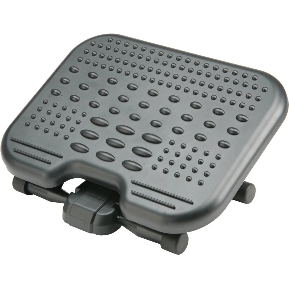 SoleMassage ergonomic footrest with textured platform features five height-adjustable settings up to 6-1/2" high and provides a tilt of up to 30 degrees. The 17" x 13" scratch-resistant, textured platform stimulates the nerve endings in the feet and is designed to invigorate and exercise ankles. The gentle rocking mechanism improves circulation in your legs.